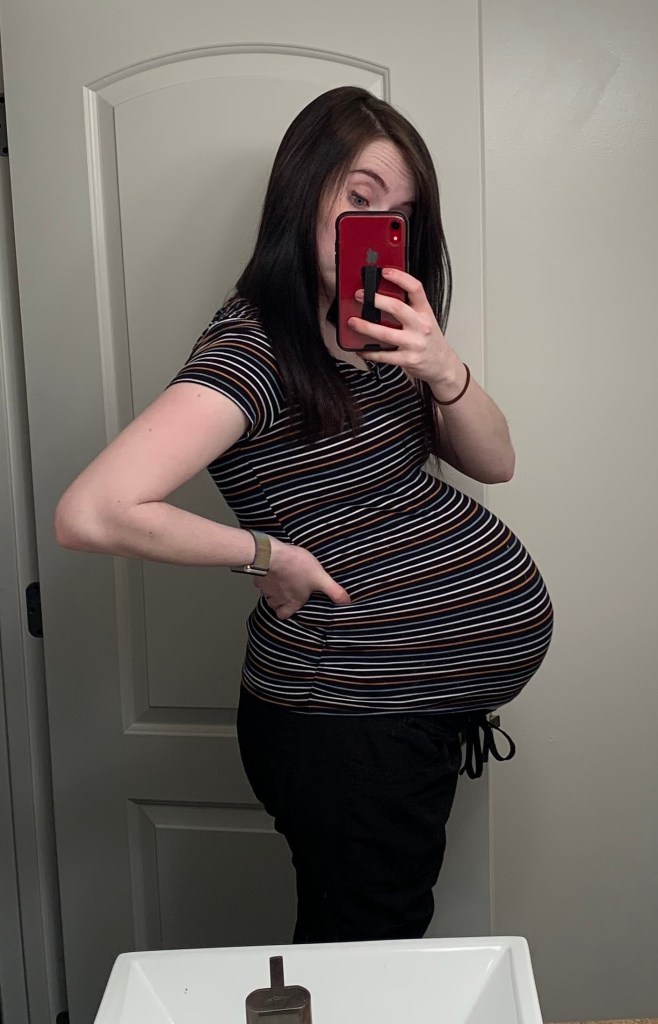 - One pair of sweats – I’ve got these sweats in two colors and I love them. Soft, stretchy, comfortable, and so cheap. Plus they still fit, as long as I wear them under the belly
