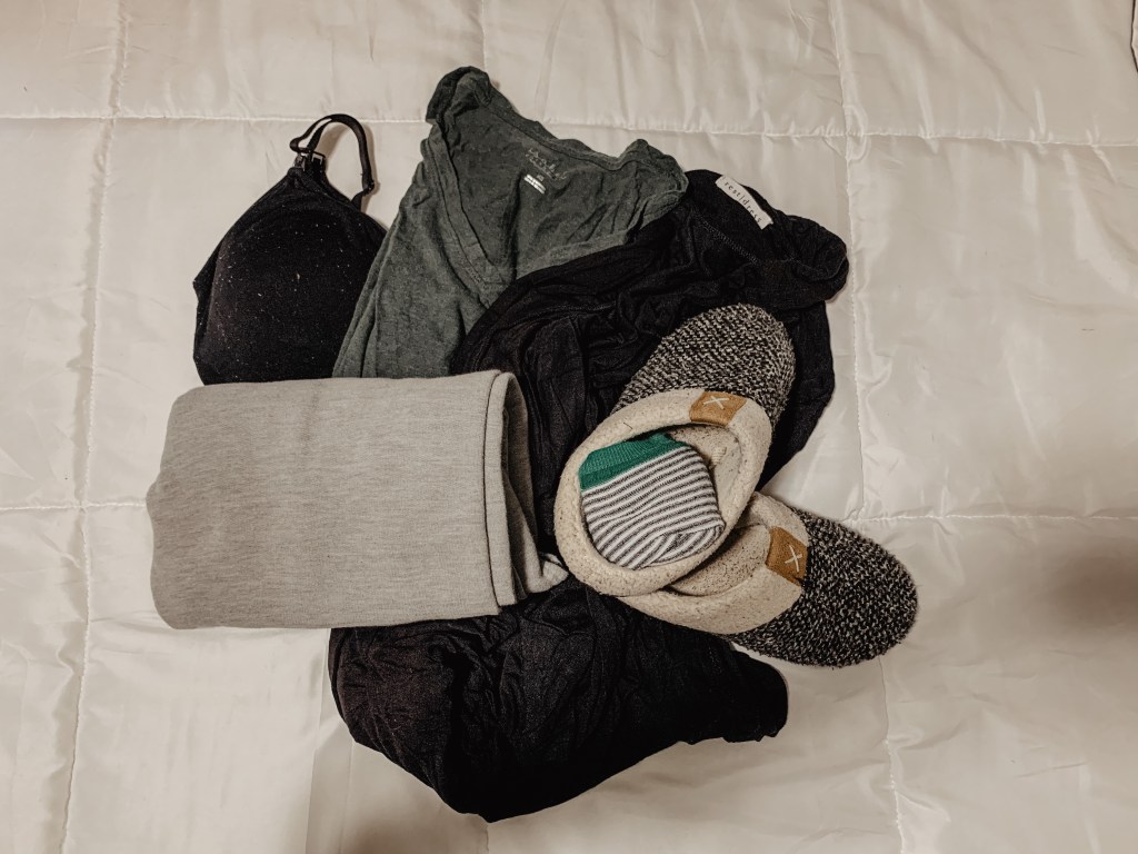 Something that seems to be a great debate is whether I’ll want clothes of my own to wear after labor and delivery, or if I’ll just want to stay in the hospital gown the entire time. I, honest to goodness, have no idea how I’ll feel. One thing I do know about myself is that I cannot sleep without long pants on. I don’t know what it is, but no matter the season, I have to wear long pants to bed. When considering what clothes to bring, I tried to think of things that I know I typically like while I’m at home, but if I don’t end up wearing anything I bring, that will be fine too.