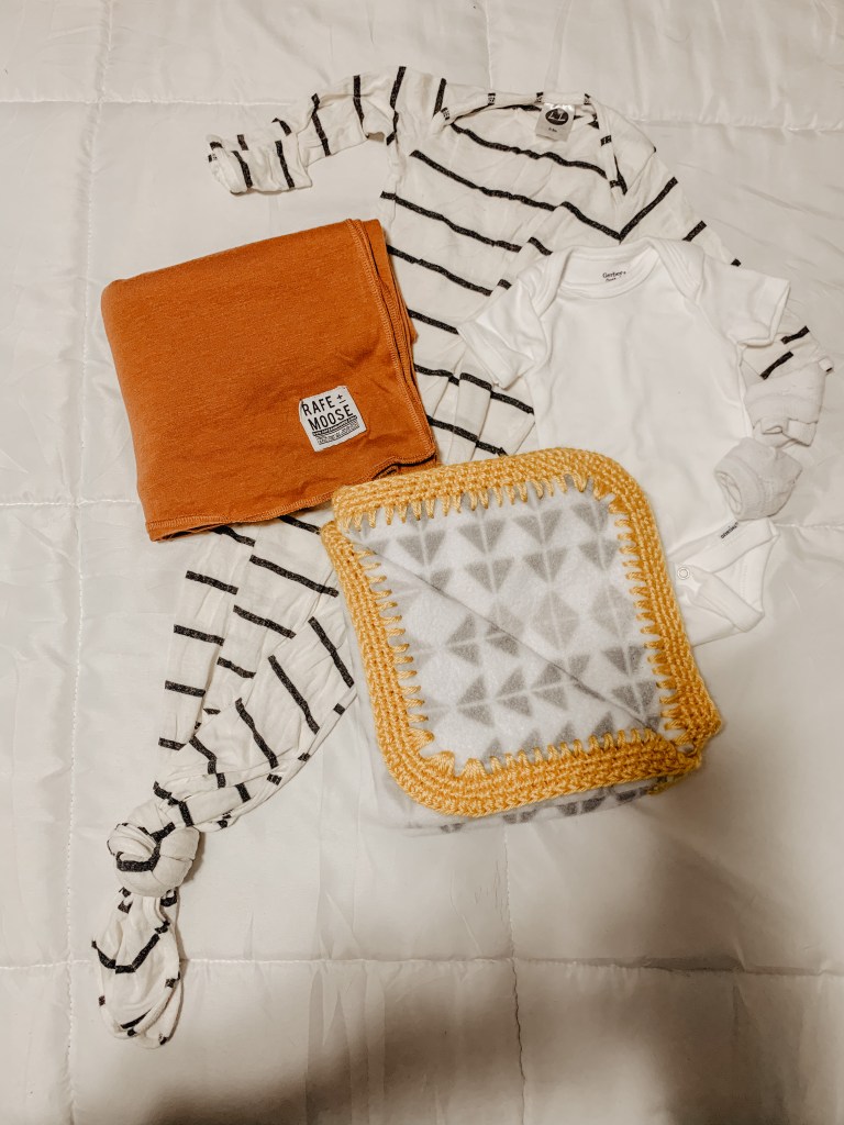 - White Onesies – I’m bringing 1 newborn sized and 1 sized 0-3 months. Babies on Colter’s side are historically large and I don’t want baby to be naked if he/she is too big for newborn clothing