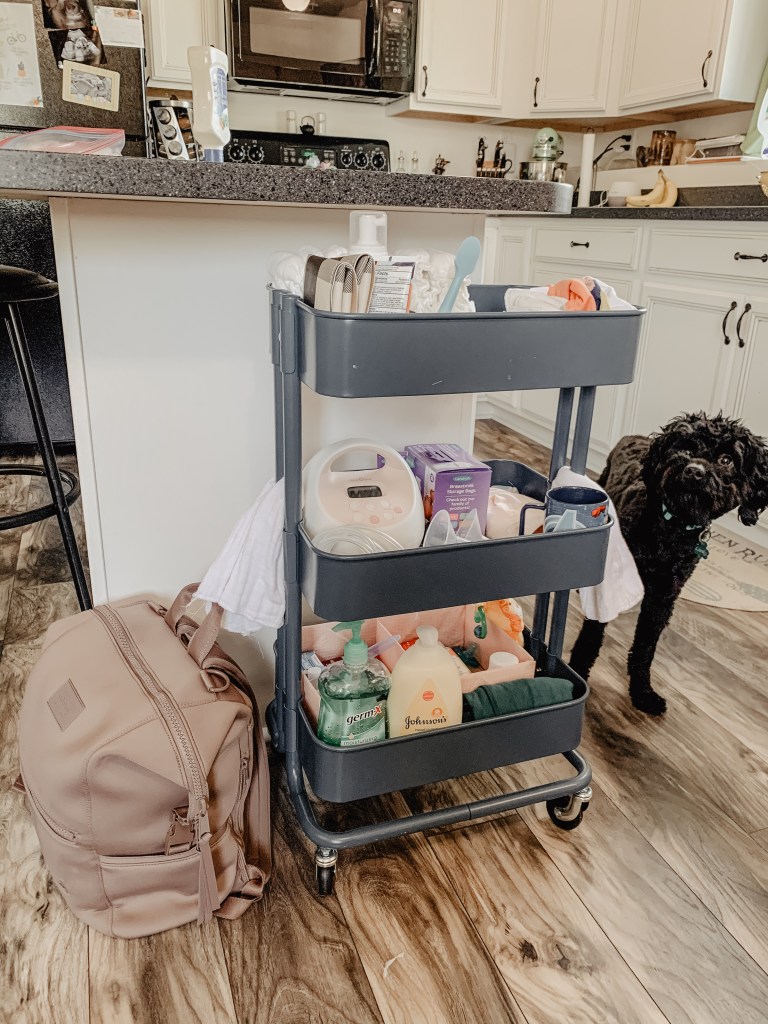 A quick search on Pinterest will show you that a rolling cart stocked with baby stuff is a must-have item for many parents anxiously waiting for their little bundle of joy to arrive. I was no different and I absolutely L O V E my cart and use it daily. Let me take you through how I set it up and how I use it, step by step!
