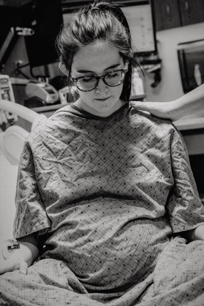 We arrived at the hospital at about 7:20 p.m. Walked up to L&D where I picked up the phone to have them let me in and said, “Hi, my name is Jaycee. I am scheduled to be induced at 8, but I’m pretty sure that I’m in labor.” The nurse on the other end said that she could let me back, but because I was 30 minutes early for my appointment, they didn’t have a room ready for me yet and that I would have to wait in the waiting room. We went in and sat down with a family that was waiting to hear news about another mom in labor. I sat on the edge of the bench, steadily breathing through contractions while I waited for them to call me over.