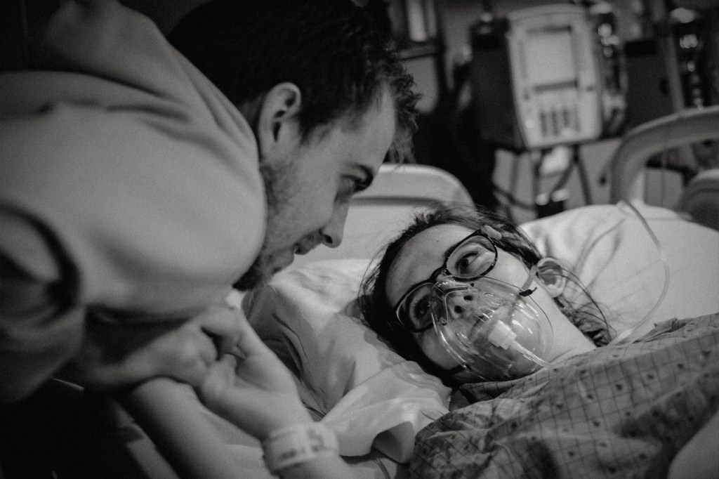 Once the epidural was placed, things got a little weird with the baby. They suddenly weren’t getting a very good reading on his heart and the nurses were concerned. They kept turning me from side to side and even helped me onto my hands and knees for a few minutes. They also put me on oxygen to help bump his levels up. My doctor was asleep in an on call room (she had worked clinic all day and it was now 3:45 in morning and had a booked clinic the next day too).