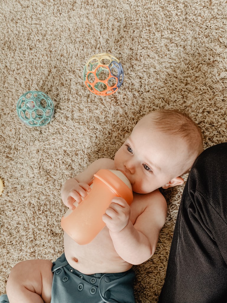 - 6 Bottles – the reason I say six is because Calvin now eats 5-6 bottles in a day. We only had 3 bottles for so long, which was fine when I was still nursing him some of the time, but when we had to switch to exclusively bottle feeding, we were washing bottles all throughout the day. It was disastrous when we had a hungry baby and no clean bottles. So now that we have six, we wash them each night before going to bed (no dishwasher in our apartment) and we always have enough clean bottles for all of the next day’s feedings. If you are going to be bottle feeding from the beginning, I would suggest more like 8-10 bottles because newborns eat smaller meals more often.