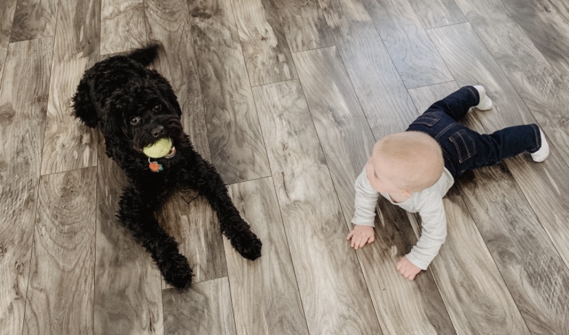 We brought Lucky home as an eight week old puppy on May 4, 2019. We were surprised to found out we were expecting on June 5, 2019. Needless to say, training Lucky to be well behaved before our baby was born became a very high priority. Here are the seven commands he knows that were most helpful when we brought Calvin home to our eleven month old pup.