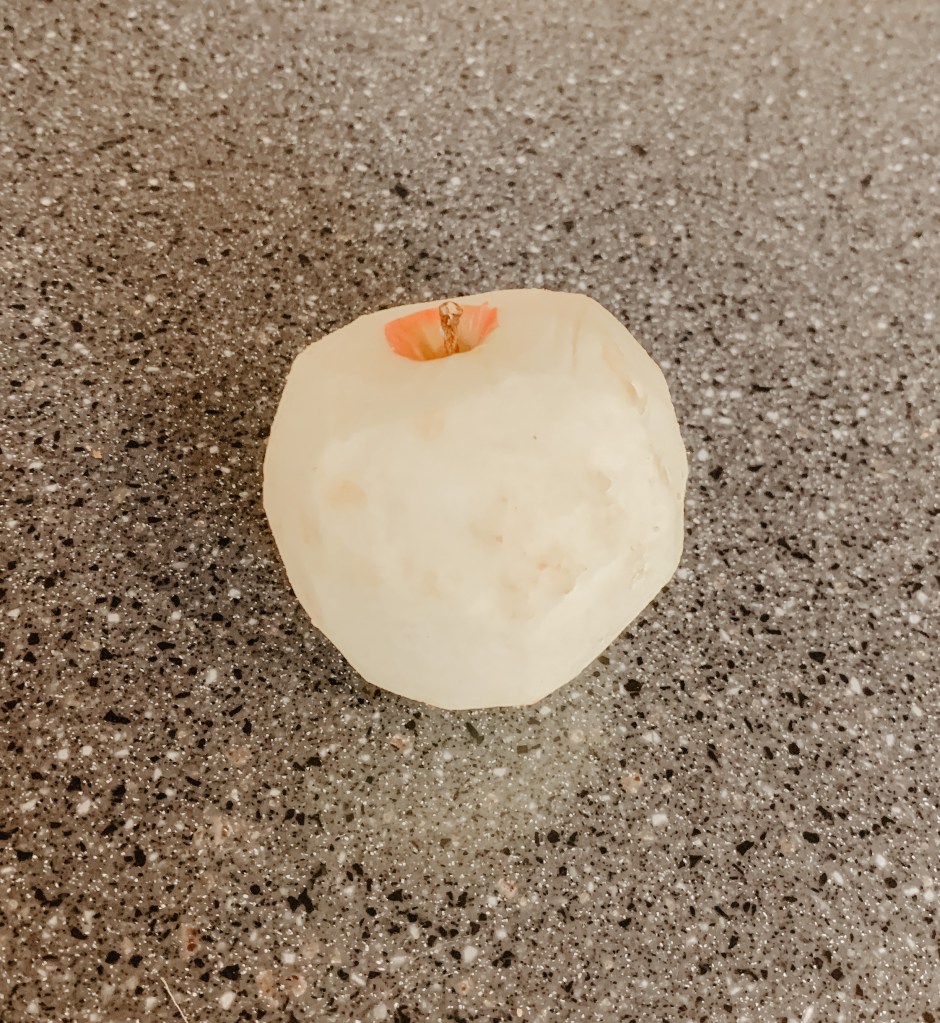 First things first, wash your fruit and remove the produce stickers. Next, use your peeler to remove the skins from both the apples and pears. Next, you’ll want to cut both fruits into chunks but keep them seperate. They look almost identical when peeled and chunked. Make sure to remove the core and seeds from the apples and throw them away.