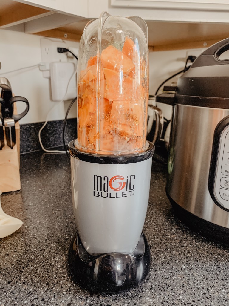 You don’t need a bunch of fancy equipment to make your own baby food. If you don’t have an Instant Pot, you can roast, bake, and boil your foods until soft. If you don’t have a chef’s knife, any sharp knife will do. No peeler? Use a small, non-serrated kitchen knife. No magic bullet? Any stand or immersion blender with works. If you need to purchase one item off of this list, I would suggest the silicone ice cube trays. These things are amazing for freezing baby food and it is so easy to get the cubes out when frozen. Here is everything I use when I make baby food:
