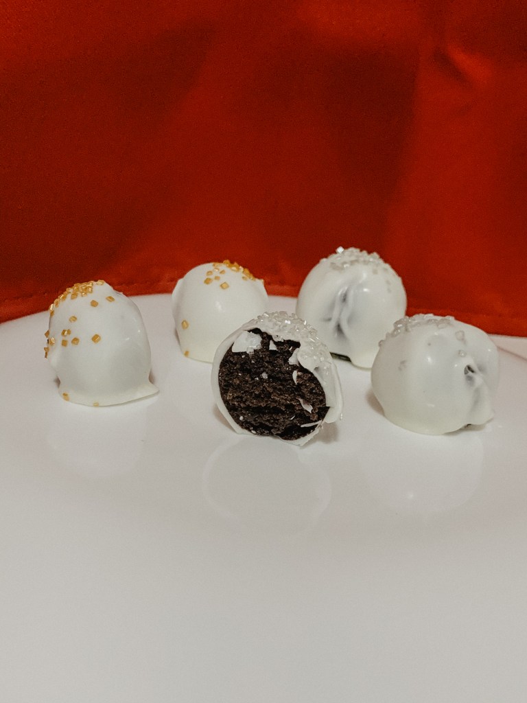 - Cover the balls with candy and set on a wax paper lined cookie sheet.