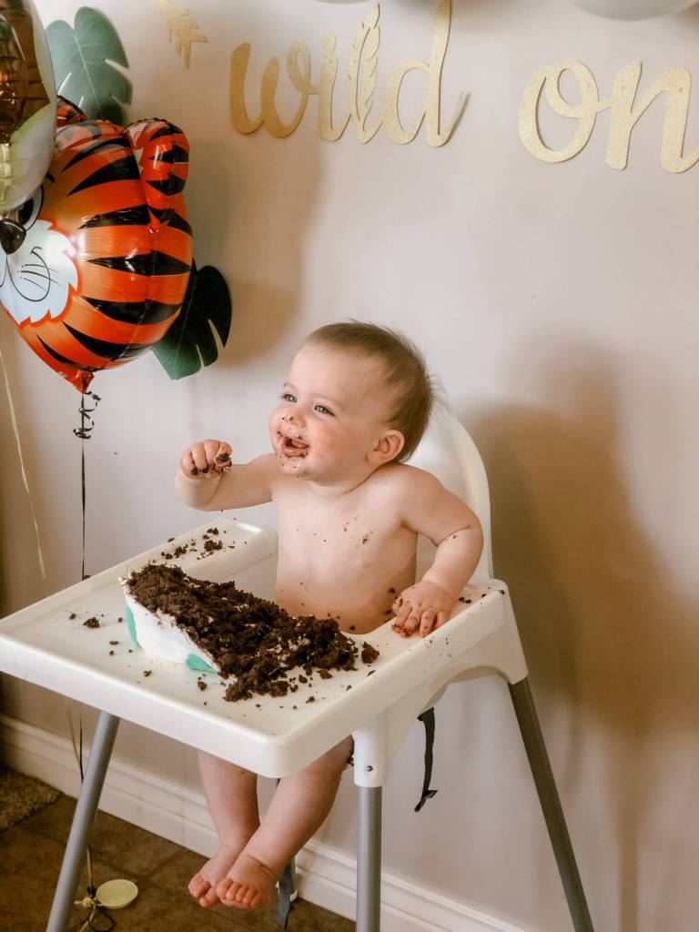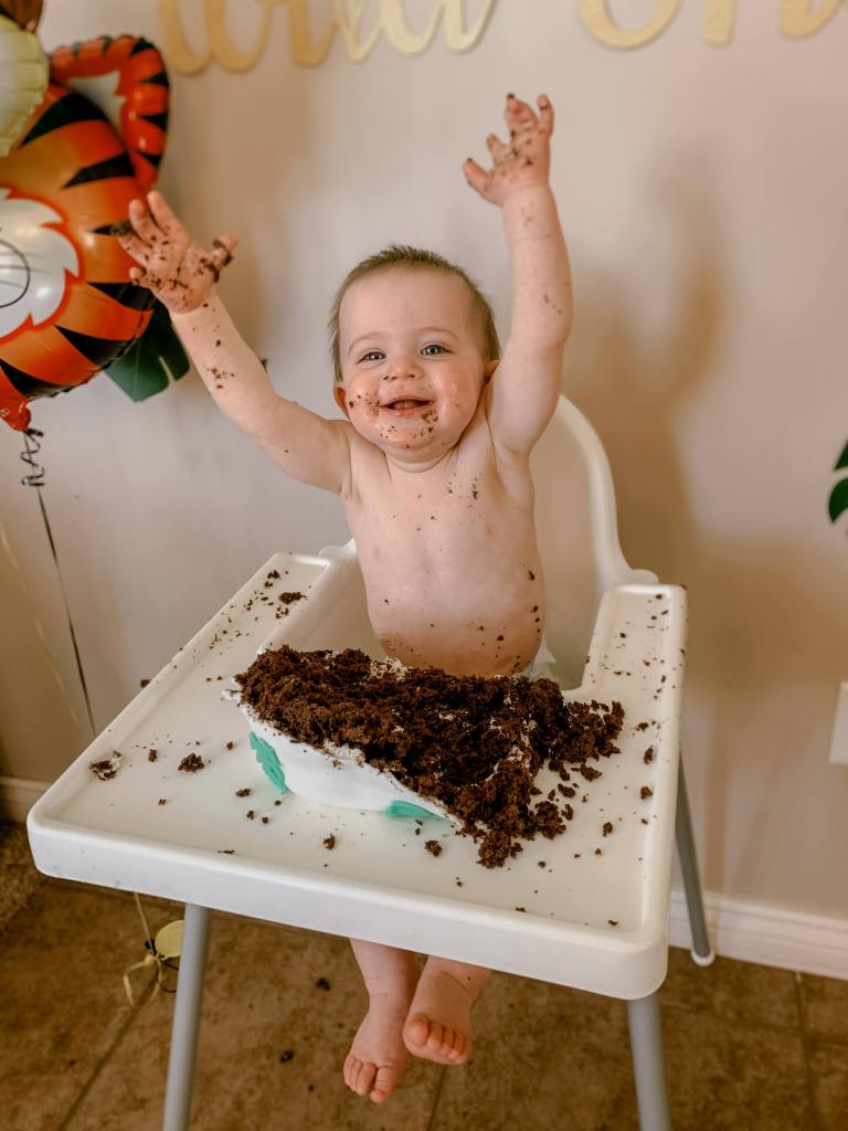 The party was a blast. Calvin received wonderful gifts from his family, my father-in-law made the sweetest video compilation of highlights from the last year, and the cake smash was humorous to say the least. Calvin had almost no interest in eating his cake. He didn’t even really want to play with it. We ended up flipping it upside down to try and encourage him to dig in, but he mostly just picked it apart to dump the crumbs onto his legs. I, on the other hand, am already so excited to throw his next birthday party.