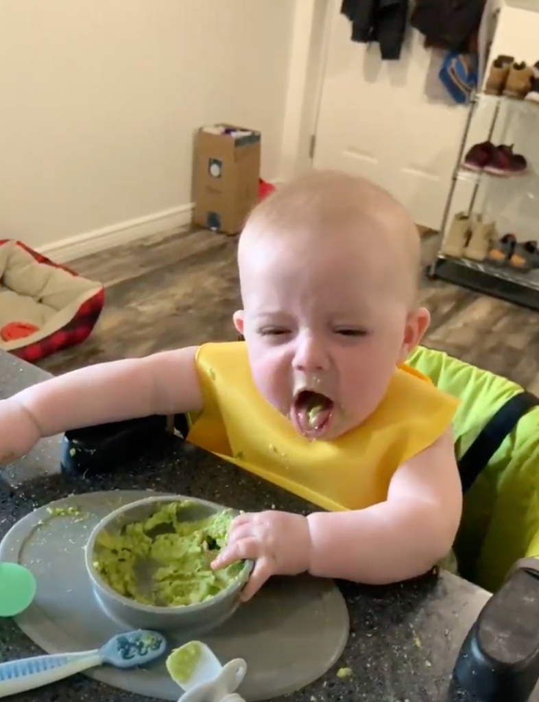 I introduced finger foods when we were about a month into solids and Calvin was well-accustomed to not drinking all of his foods. I gave him banana pancakes, puffs, and tiny pieces of fruit. Calvin loves pretty much everything except for scrambled eggs. He has never enjoyed scrambled eggs.