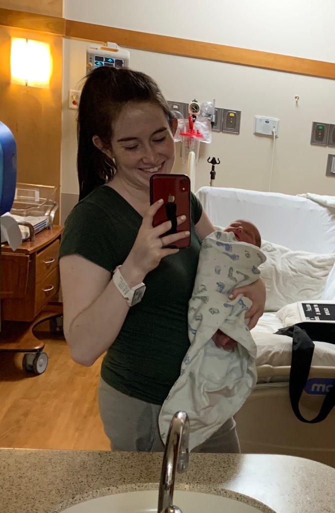 There I am, sitting in my bed in the postpartum ward. It was about six o’clock in the morning, I had given birth two hours earlier, I was settled in my room, Colter was asleep on the couch, and my brand new baby was sleeping peacefully in my arms. Because I only had my epidural for 40 minutes, I already had all of the feeling back in my lower extremities. A nurse came in to introduce herself and she asked how I was feeling. I told her I was fine. And then she started to push on my belly and talk about all of the products waiting for me in the bathroom and explaining how to position an ice pack in my underwear. And suddenly I didn’t feel fine anymore. I realized that I had to take care of myself on top of learning how to take care of my baby. Oy vey.
