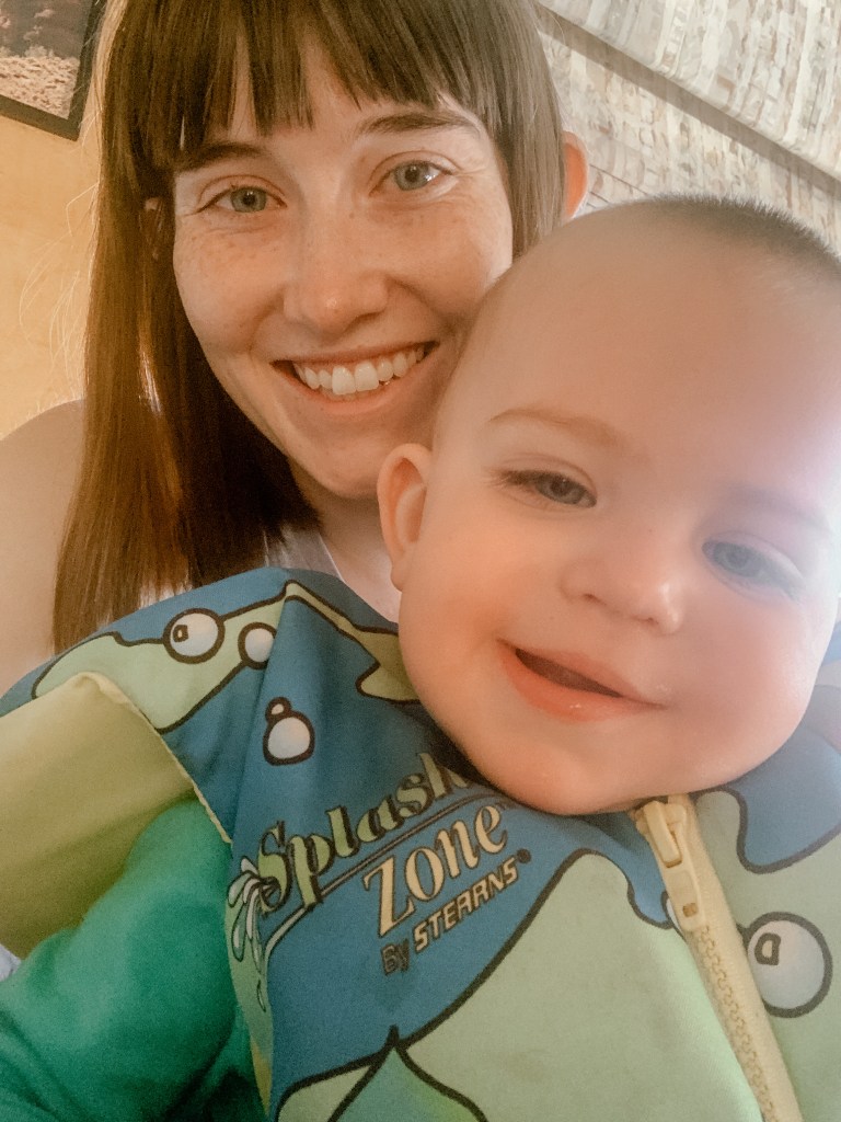 Calvin tolerates having sunscreen put on pretty well. I often applied the sunscreen before we put his rash guard and swim trunks on him because I found it easier. I also used my smartwatch to set a two-hour timer to remind me to reapply sunscreen often enough. I also usually put sunscreen on both of us whenever my timer went off, just to make things easier on myself. My methods worked well, because neither Calvin or I got a sunburn despite the long days and hours in the hot sun.