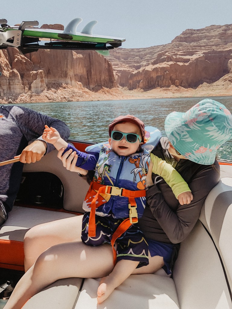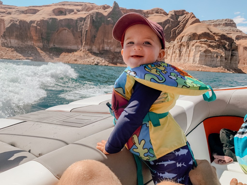 Spending a week and a half on a houseboat in Lake Powell is a summer tradition I happily married into. This is our second year taking our baby-turned-toddler with us on the vacation. As a bonus, I’m pregnant this year, so I’ll throw in a few tips for that as well. Here’s all of my tips and tricks for surviving such a hot, fun adventure!