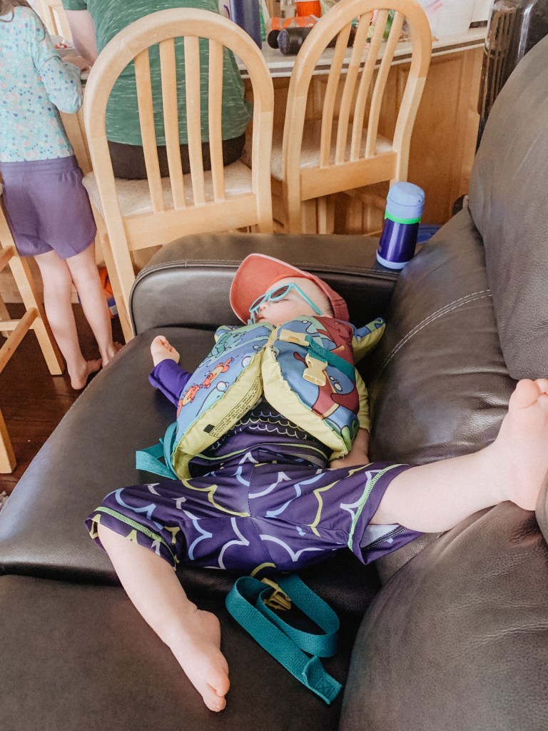 Four things greatly impacted Calvin’s mood while on our vacation: being hungry, being tired, being thirsty, and being too hot. His snack box solved the hunger issue most times and when he got tired, he napped.