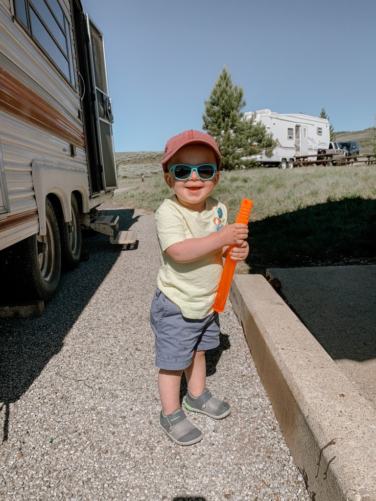 I also brought bubbles to entertain him when wandering around wasn’t an option (like during camp set up or meal preparation). Calvin doesn’t love chasing and popping the bubbles quite yet, but he does love to swing the bubble wand around and fling soap everywhere.