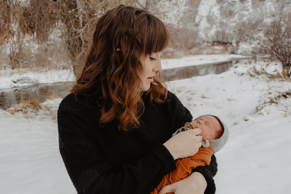 The key to dressing a baby in the cold is layers. The advice that you’ll hear over and over is to dress yourself comfortably and dress your baby in one more layer that you are wearing. Also, both of my babies were winter babies (one born in early February and the other born in late November) so my experience with taking them out in the winter is at the newborn stage and at the late infancy stage.