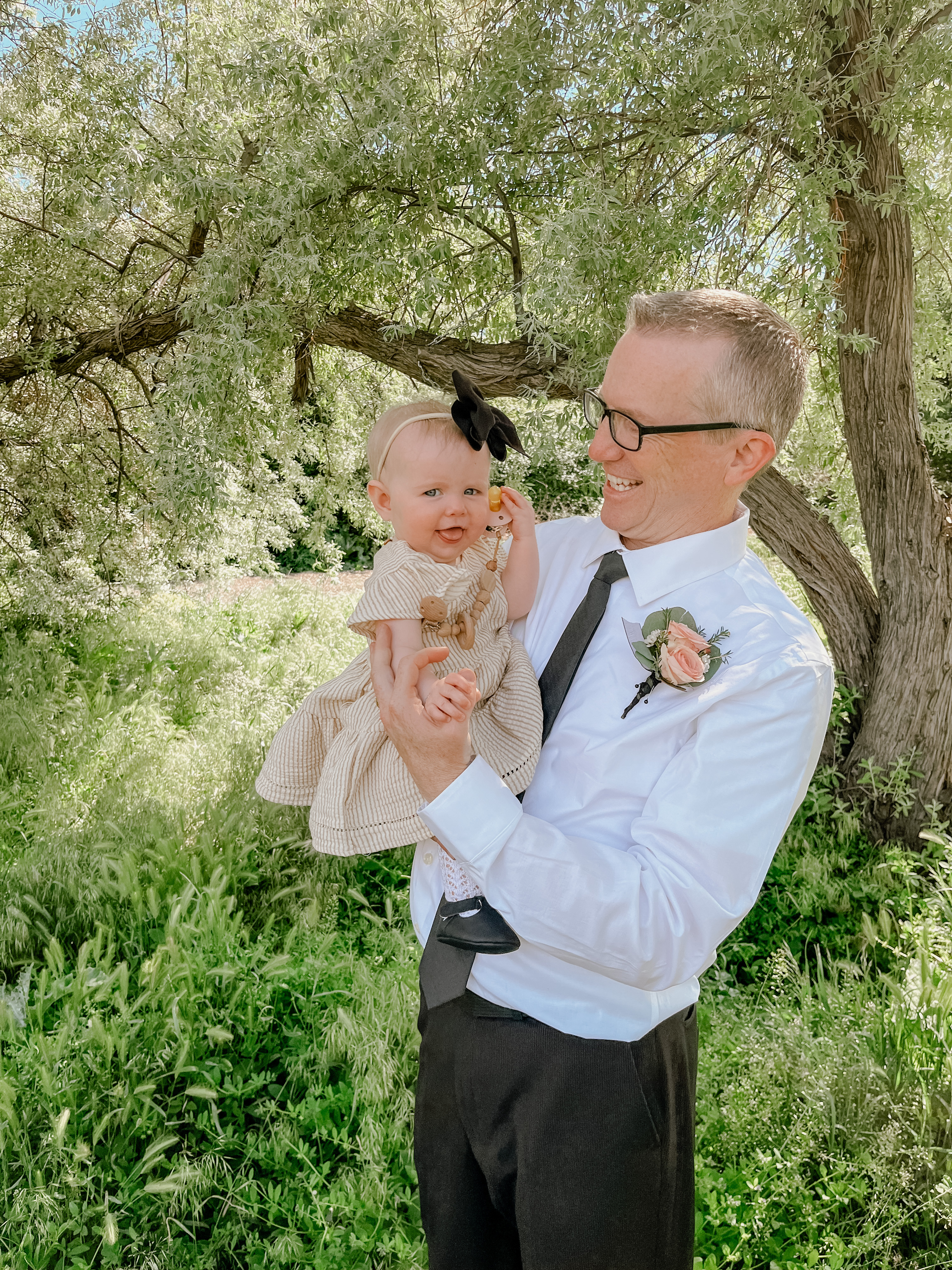 It was really nice to have lots of family there to help hold Della so Colter could focus on Calvin and keeping him entertained. If she hadn’t been in a social mood, Colter likely would have worn her in our baby carrier during the ceremony. Della loves the carrier and it always chills her out when she’s in a mood.