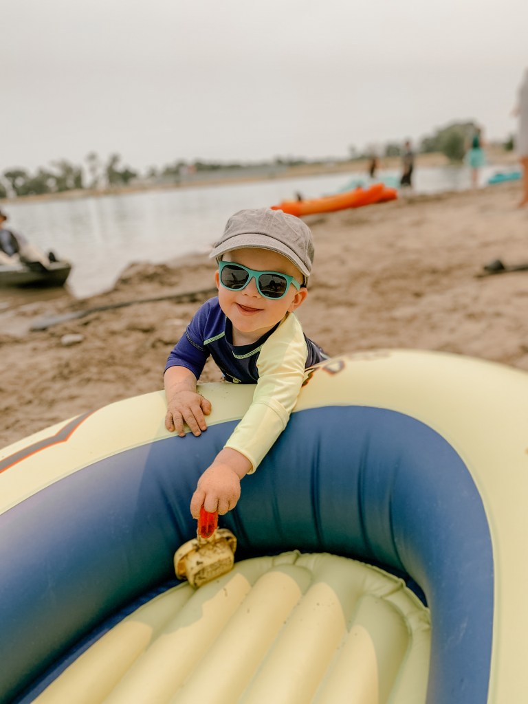 Colter is pretty light and I am extremely fair-skinned, so wearing sunscreen is a must for me and my kiddos. My personal favorite brand is SuperGoop. I use the Unseen sunscreen for myself on my face every day when I’m getting ready. Then I use their Play sunscreen for me and the kids whenever we are getting outside and the UV index is a 3 or higher. They have a 100% mineral sunscreen line, if that is more your stride, but the ingredient list on the regular makes me comfortable putting it on my kids once they turn 6 months old.